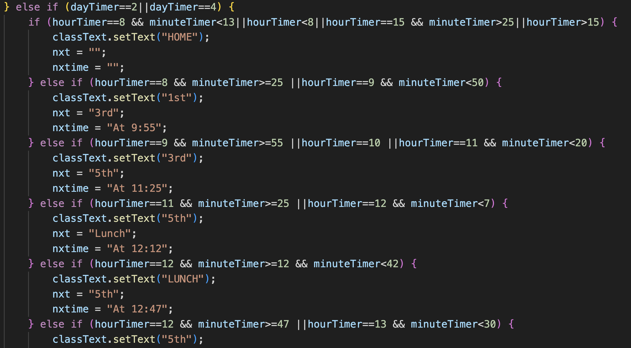 This is one of my earlier projects. In middle school, I realized that lots of students would ask "How long until class gets out?" or "What period is next?"